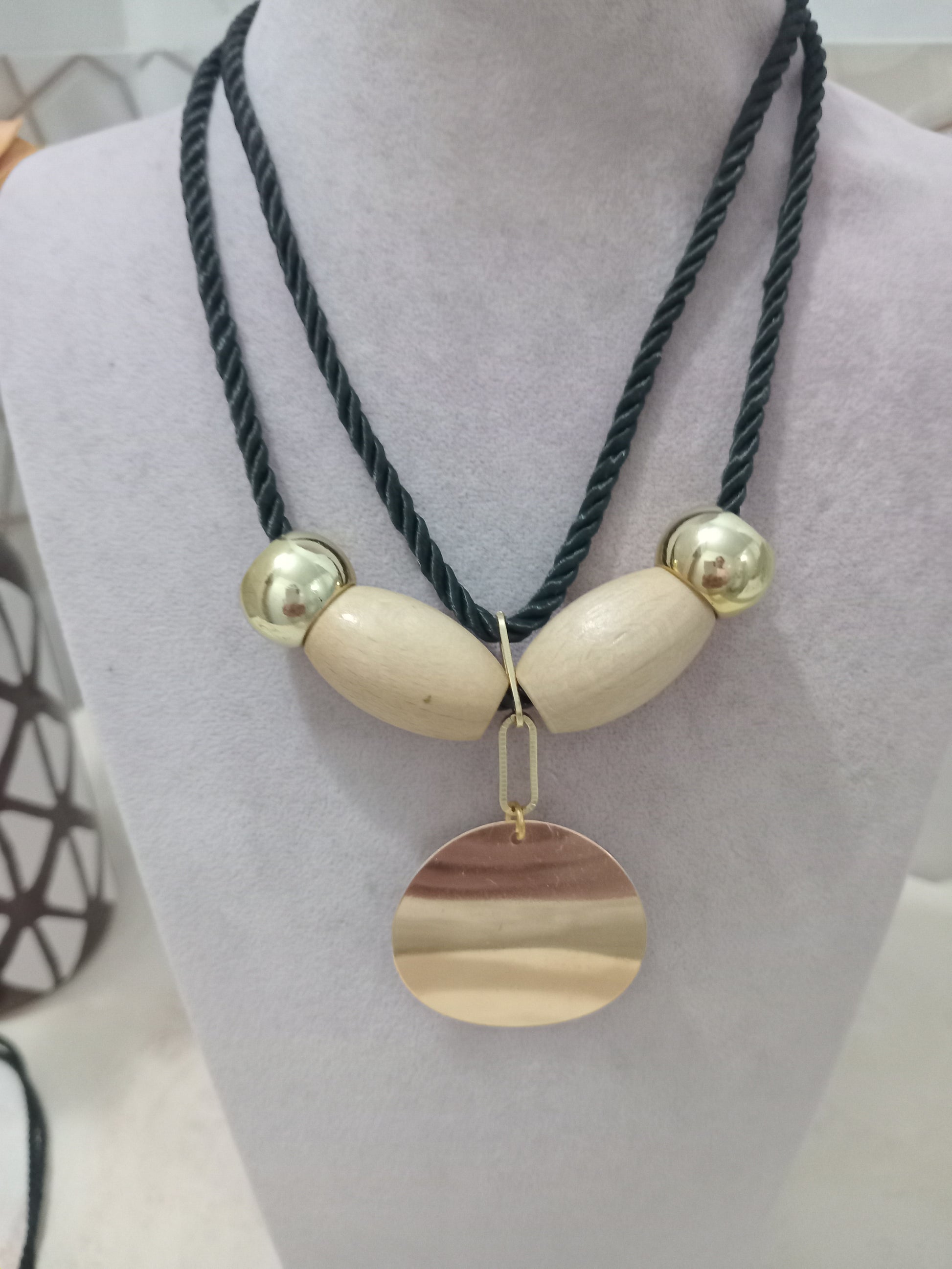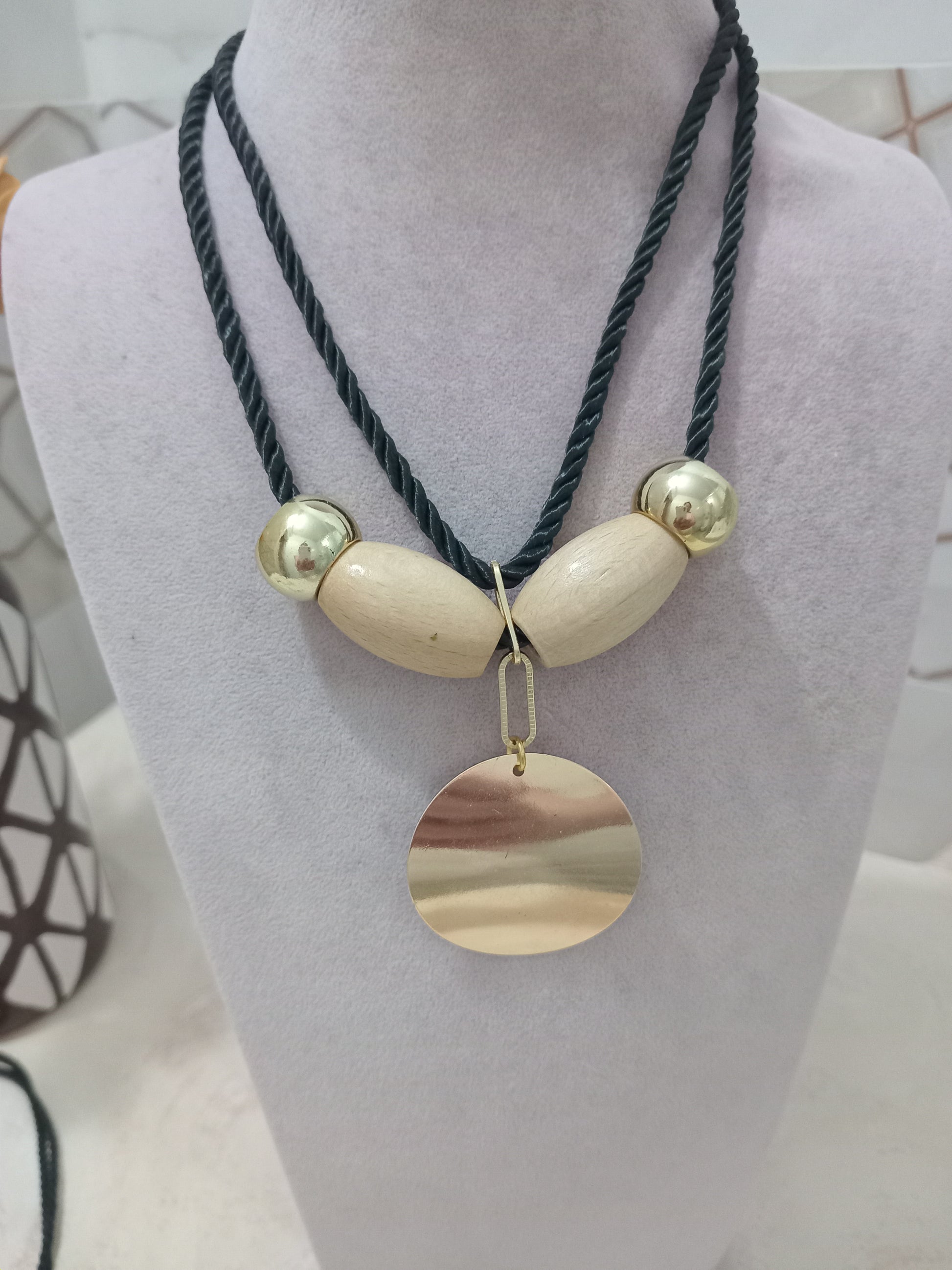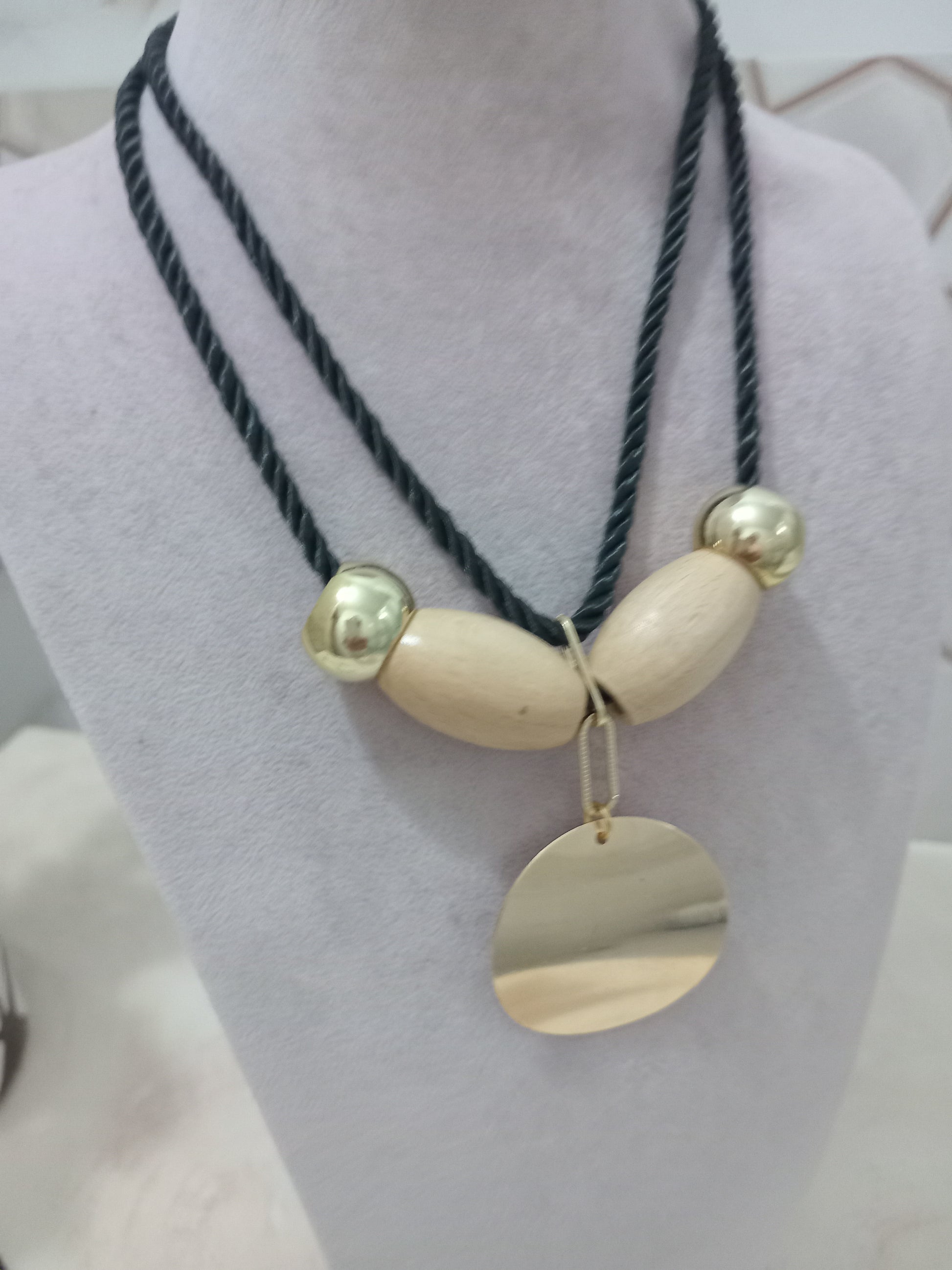 "Büyük arpa boncuklarla tasarlanmış, yuvarlak metal kolye ucu şıklığı ve zarafeti birleştiriyor. Modern stilinizi tamamlayacak zarif bir aksesuar."